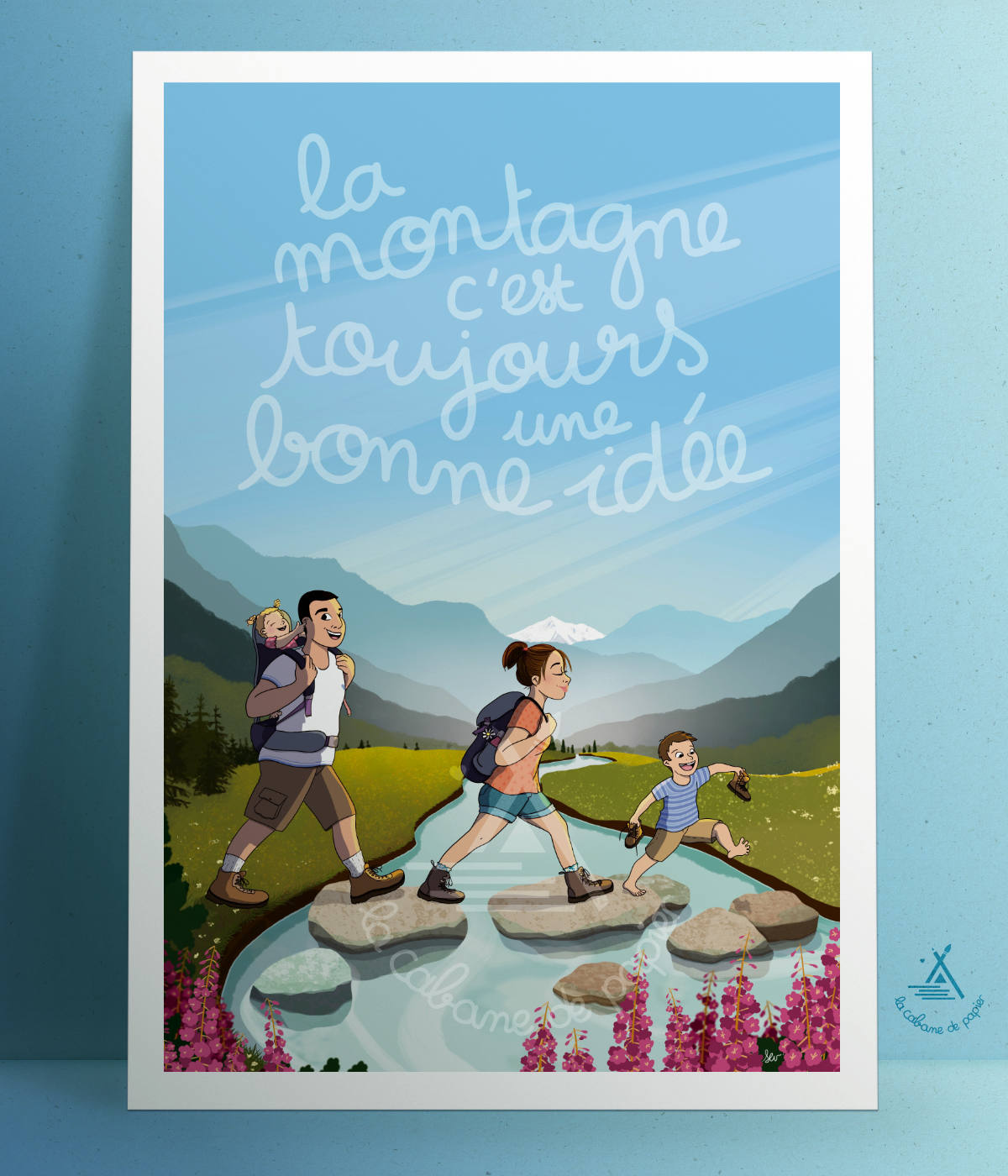 A tous ceux qui préfèrent la montagne à la mer, ceux qui vivent entourés de sommets, où ceux qui attendent impatiemment leurs vacances pour y retourner : cette affiche vous rappelle à quel point les paysages de montagnes sont toujours là, dans votre coeur. Cette affiche illustrée est un très beau cadeau original à offrir ou à intégrer dans votre décoration !