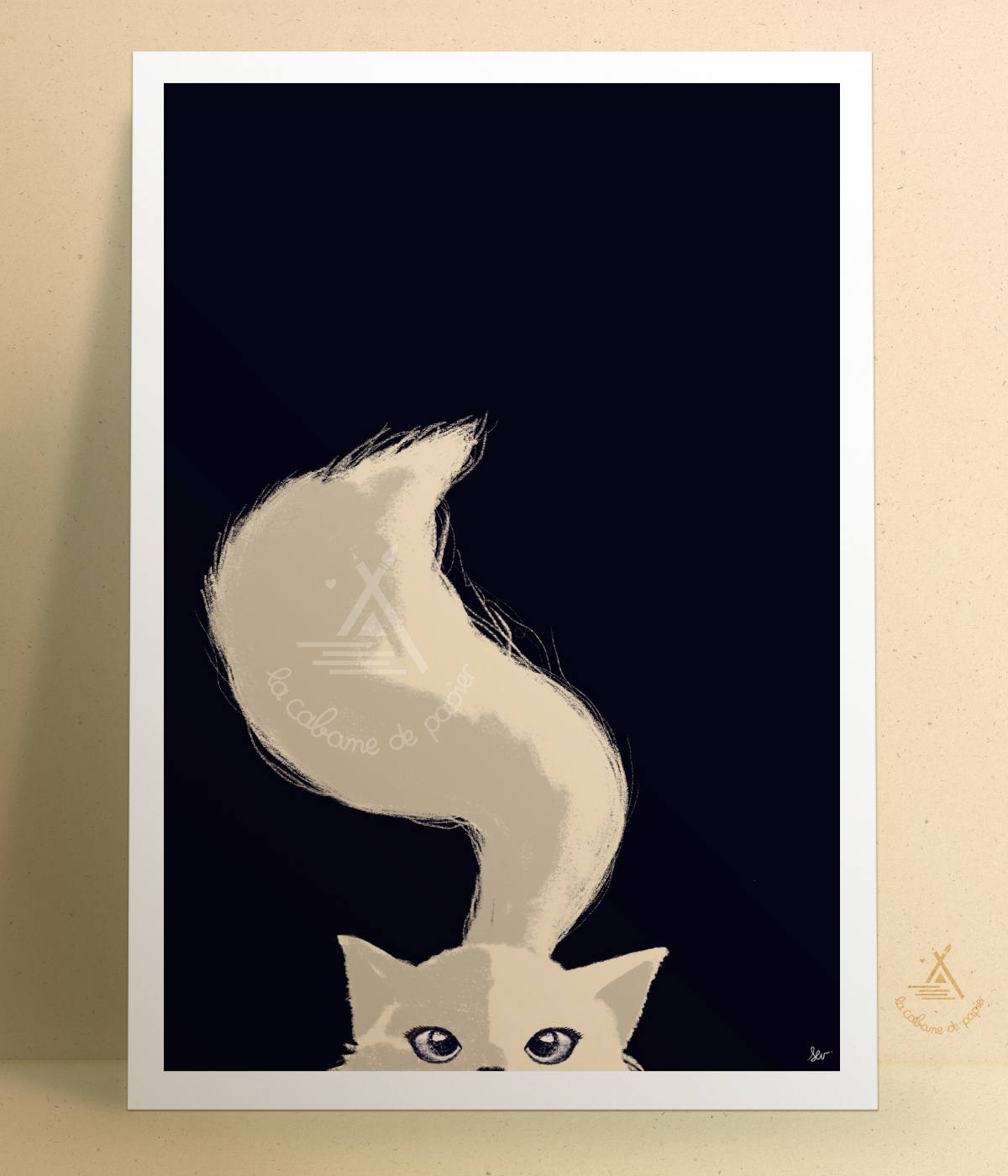 Cette affiche illustrée et très graphique est un très beau cadeau original à offrir aux amoureux des chats ou à intégrer dans votre décoration !