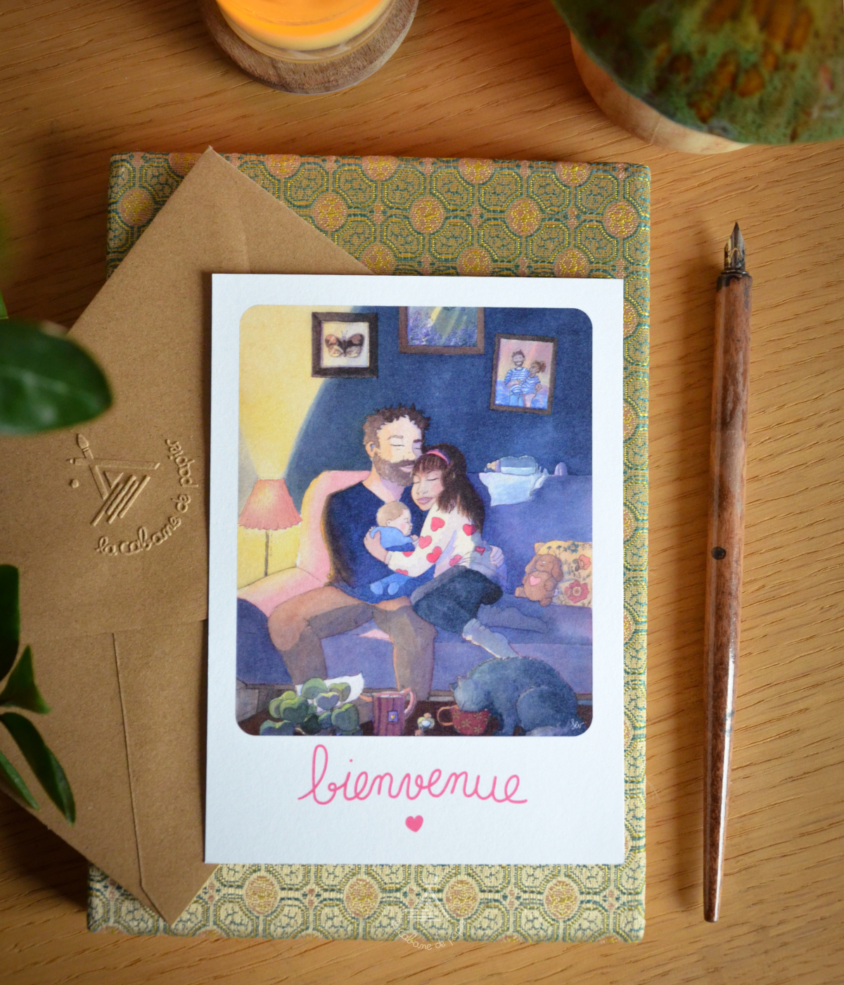 Carte illustrée par mes soins et imprimée sur papier FSC en Haute-Savoie, France.